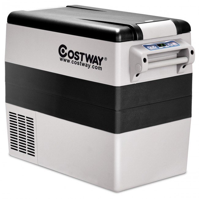 It keeps drinks and snacks at a safe and cool temperature. A 12 V/24 V DC vehicle outlet adapter is included for on-the-road use. A 110-240 V AC home outlet adapter is also included. It can make sure that your drinks are icy and your cosmetic and medicines are in constant temperature. Its 54 quarts capacity provides enough space for drinks and snacks.